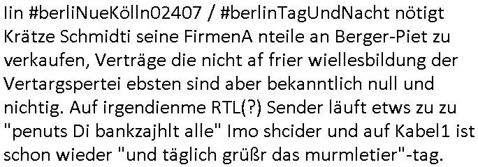 18.06.2025 21:45 Iin #berliNueKölln02407 / #berlinTagUndNacht nötigt Krätze Schmidti seine FirmenA nteile an Berger-Piet zu verkaufen, Verträge die nicht af frier wiellesbildung der Vertargspertei ebsten sind aber bekanntlich null und nichtig. Auf irgendienme RTL(?) Sender läuft etws zu zu "penuts Di bankzajhlt alle" Imo shcider und auf Kabel1 ist schon wieder "und täglich grüßr das murmletier"-tag. https://www.tvinfo.de/fernsehprogramm/2153276703-und-taeglich-gruesst-das-murmeltier [0] "202506182145-0-1.jpg" [1] "202506182145-0-2.jpg" |