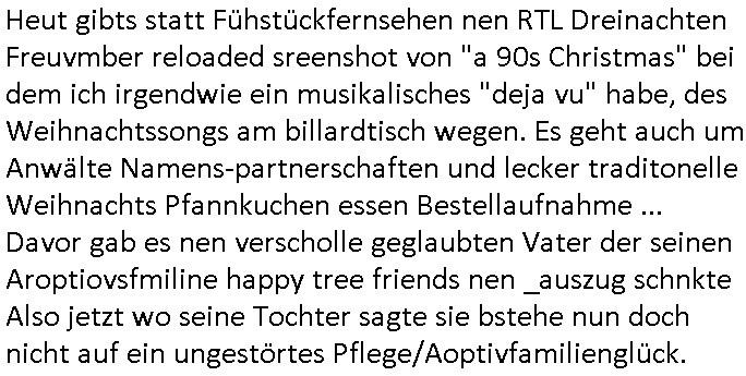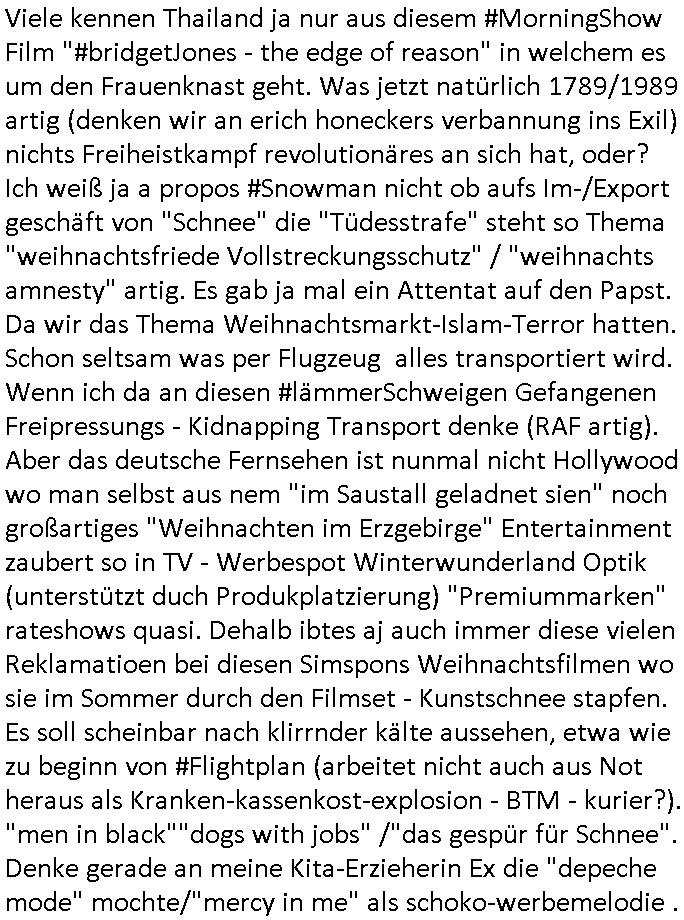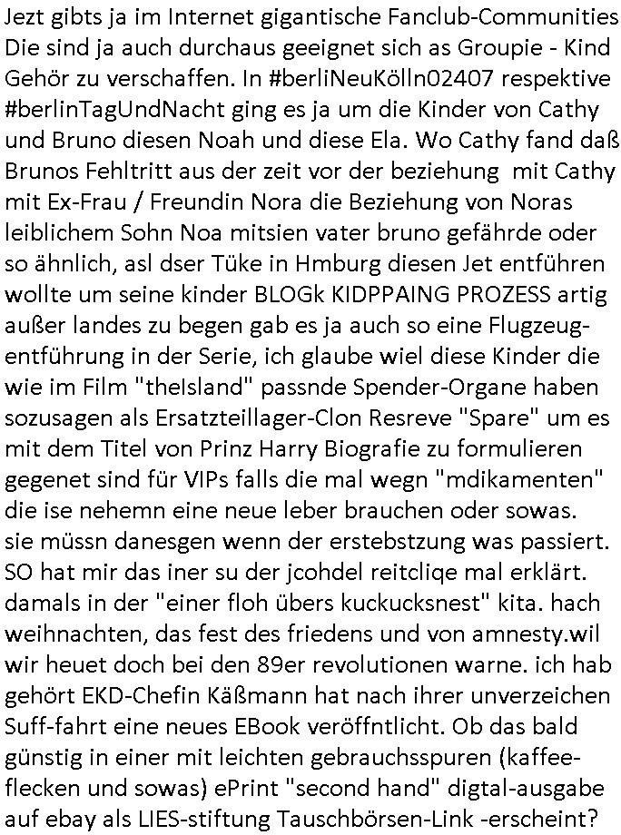 | Vergesst "Helena Phisher" zu Weihnachten gibt es einen "Dick Brave" Song "Back for good" aus der TV Werbung! Und Palmina Merkel (ich hab sie erst kaum erkannt) hat die Haare irgenwie anders als früher. Ansonsten gab es auc nch was zu Disnsthunden der Polizei die angseblich was gefunden haben aber da war eher so vom Typ die Polze dmeioleirt das rücklchtdn schbt dann nen Straf-zettel dafür, den angeblichen erschnüffelten Fund hatten die selber da vorher hindrappiert. Undann wolkten sie noch was ekrlären über Passwörteer, ob es kein Einbruch ist wenn man nur eine eifaches schluß hat anstatt einer teuren qualiataiv hochwertgen shclißnaage sinnegmäß, dannhaben sie nich gesagt daß man ein Anzeige wegen Identitätdiebstahl machen solle wnen man ienshccehs passort hat und sagen daß alle Verträge die man gemacht hat ungültg waren. DA könnten doch Plaminas Fns mal aktiv werden und ihrer KFZ-Leaisinggesellschaft, ihrem Vermieter und ihrem Arbeitgeber emailen für sie daß sie das aut gar ie haben ollte,nie da whne wollt und auch nie als TV Moderatorin arbeiten wollte, und daß das alles nur wegen ihrem Passwort passierte ist. In #Szits habn sie ja gezeigt daß Las Veges Casino Anwälte auch sagen können mans sie spielsüchtg und einnen zur Kur schicken könenn wenn sie einem Promie die wohnug kündugn wollen oder den Anstellungsvertrag. Und es ging um eine Typen der in einem Miet-Kaufhaus randaliert hatte. Und dann haben sie (motto #FRYNACHTEN - überaus originelles Wort-Spiel