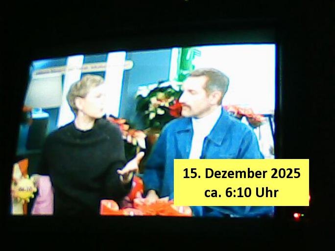 Um mich auf die neue Zeit umzugewöhen hab ich dann schon-mal umgeschaltet auf diesen Programmplatz wo früher das drite Programm vom BR in SD gesendet wurde Volksmusik und sowas.Dort bewirbt Freddy Quinn gerde in einer 0800er Cal-in-Show seine Weihnachtalbum - CDs (Wie bekomme ich die in meinen MP3 player USB-Port?) Wow,die dkenanalsesman kan sogar die passende Stereo Anlage zu dendtaräger mit dazukaufen fehlt nur noch ein Steramingtarif mit bewachtem Ökstrom-Rechenzentrum! Für den Fall das unsere Stasi auf piratebay/eMule meine Playlist mit Protestmusik mit subsvrsiven Texten abhört. Was nützt einem der beste (Modell #Lockerbie) Ghetto Balster wenns nirgendwo mehr Batterien zu kaufen gibt? Anyway: ich fin des ziemlch subtil den füheren Sendeplatz vom BR einen kommerzeilen volksmusik Sender zu geben. https://www.tvinfo.de/fernsehprogramm/2256733483-christoph-sieber-weitermachen https://www.tvinfo.de/fernsehprogramm/2281037465-mtv-in-the-mix http://www.digitalfernsehen.de/news/empfang/satellit/nach-sd-abschaltung-nachfolger-fuer-astra-sendeplatz-des-br-steht-fest-1132452/ https://www.volksmusik.tv/juli-empfang/ | |