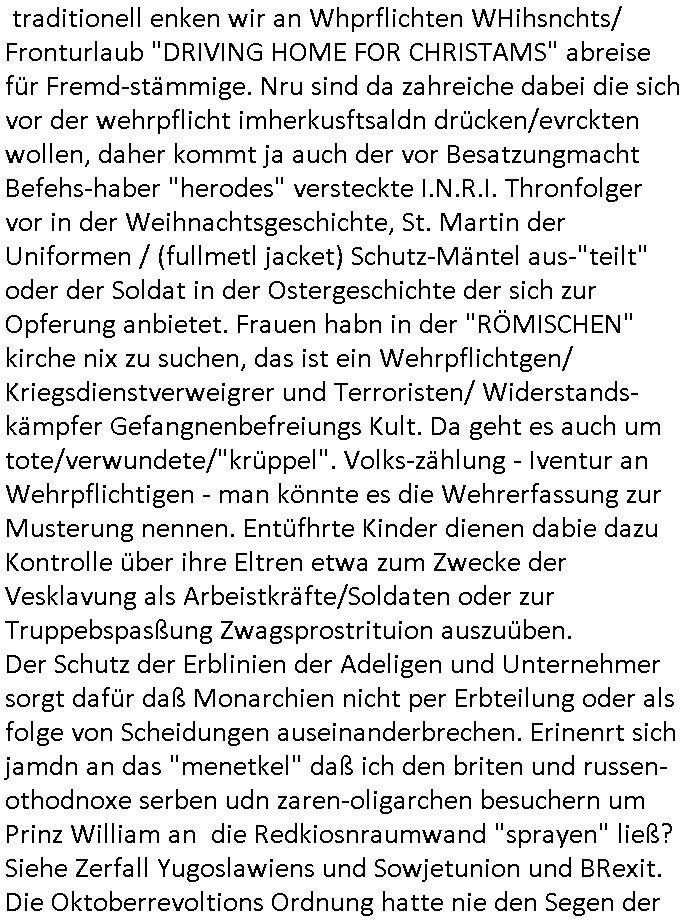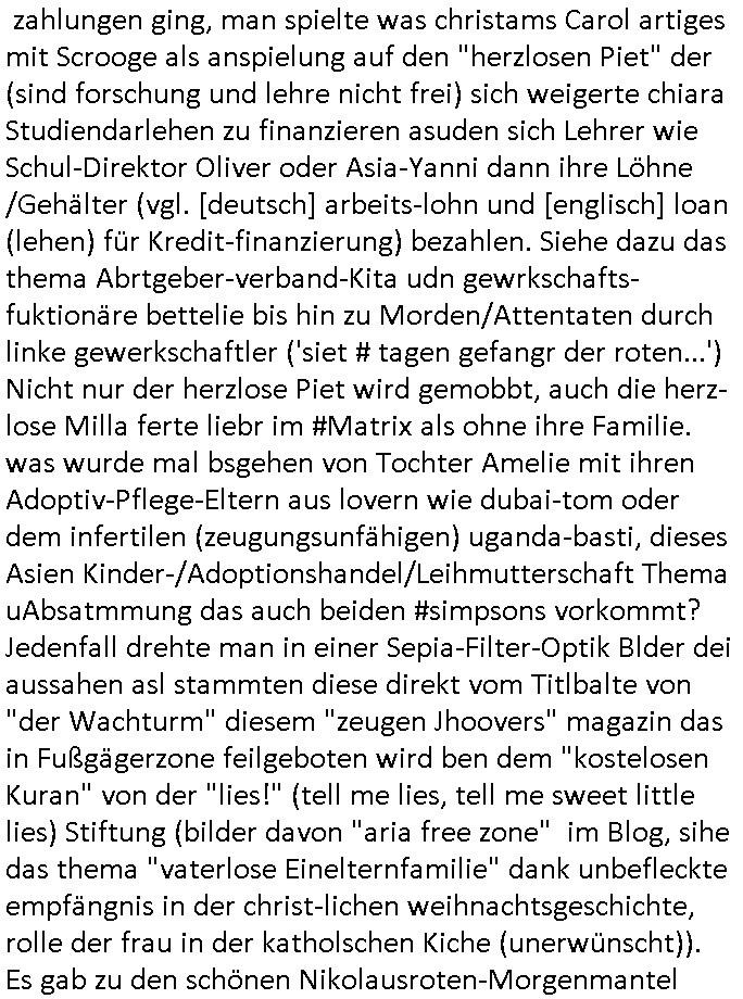 | ... milär-aubildung ersparen will (Versteckvor Herodes Häschern die Throfolger Erben pr "manöverufall" töten wollen). Da könnte auch imer Erb/Altegum Konflikte dahinter-stecken in Industriellen-Dynastien asl "based upon a true story" wre begebheit aufder Fikion msitns basiert. Odereta Stzrits um Urheberrchte, Mich hat das ganze drehbuch wie scon der rammstein #tatort Krimi vom Freitag an Gsche ausder zeie der Dehbuchidee für den Film #Matrix im #Hexenkessel Ende #1998 erinnert. Auch den Rmmstein #Tatort kannte ich ihallcih, ichweiß daß es daÄrger gab wegn der Kusnt-Schnee-Flocken. Dei ganzen Mchtevrälntiss hier basiern auf Kidapping/ vergawaligung/Terror-Morden, einfach mal aufmeksam histsrch beleget "Thronfolge Mordserie" wahrnehmen. Macht und besitz von Adligen udnmfösenorgsrione da gaibte s sihe Parterei inegeland kaum einen unterchied. ukaler bewaffnete udn plündernde Kolonialmachtheere. Etway mit dem NS Shculkut Ziek das Volk zu versklaven "lars eidinger - blumen von egstren" Reparatioszahlugen. Luet die Kidner in Kitas die Spedier-Hosen kaputtmachen. Sie mit (zufaöölgen) "geschlechtreifeprüfung" Fotos von "Hochzeits-scahupielen" erpressen? Prinz WIlliam ist jedenfalls wie ind er folge als "richie rich" Bart Simpson seinen suprrechen doppelgänger trifft desn halbrduer ih ermdone alssn will ein übler Bruder für "Prinz haIry". wir einnern uns: "maddi mccann" artiges kidnapping und erpressungen wo gekippte kinder "STCKHOLM SYNDOM"