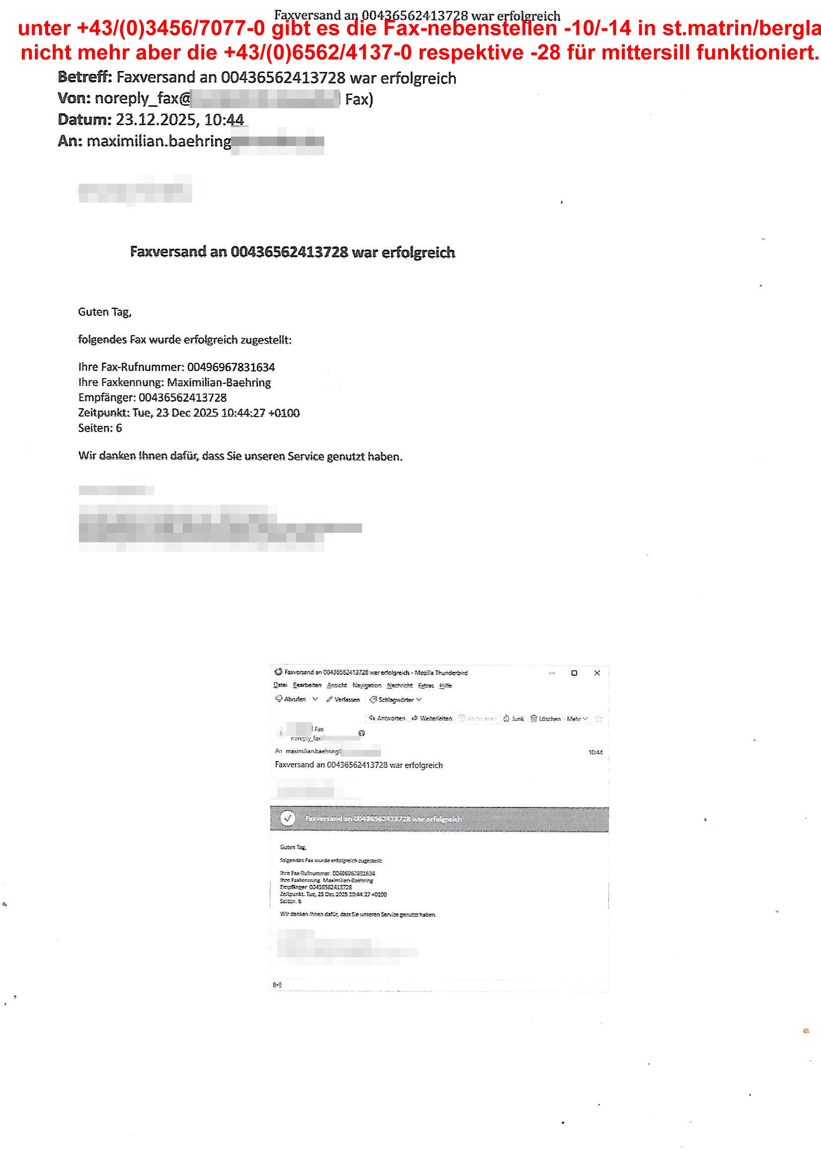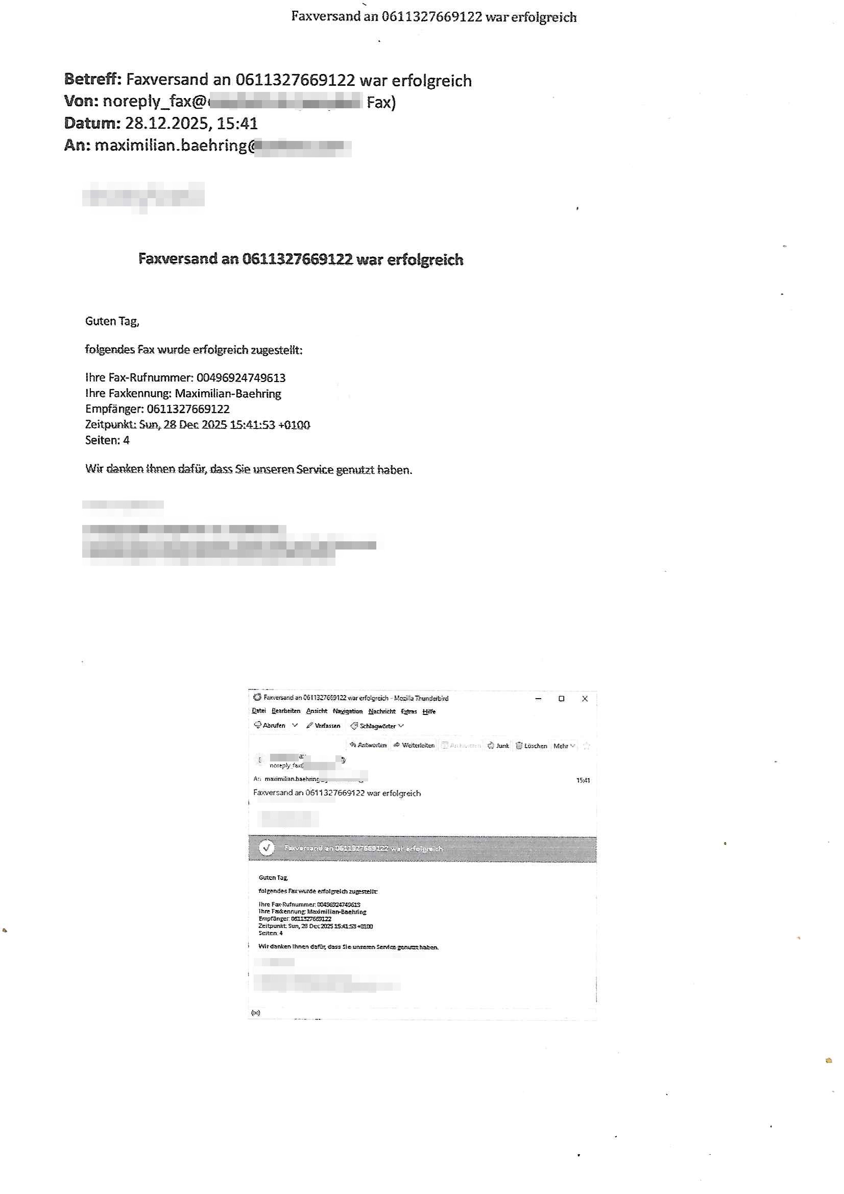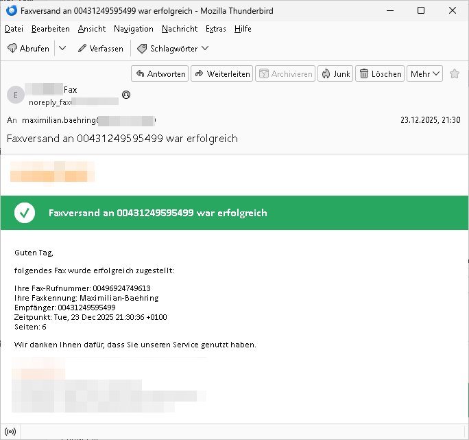 Betreff: Faxversand an 0241568372991 war erfolgreich Datum: Tue, 02 Dec 2025 05:52:44 +0000 (UTC) Von: Fax <noreply_fax@> An: maximilian.baehring@*** Web2Fax Faxversand an 0241568372991 war erfolgreich Guten Tag, folgendes Fax wurde erfolgreich zugestellt: Ihre Fax-Rufnummer: 00496967831634 Ihre Faxkennung: Maximilian-Baehring Empfänger: 0241568372991 Zeitpunkt: Tue, 2 Dec 2025 06:52:44 +0100 Seiten: 1 Wir danken Ihnen dafür, dass Sie unseren Service genutzt haben. | |