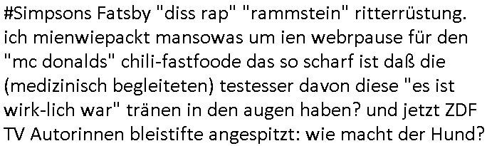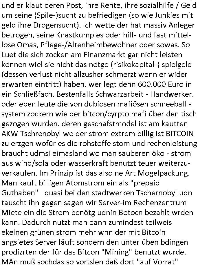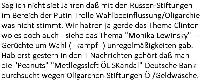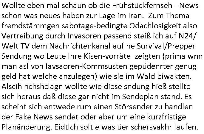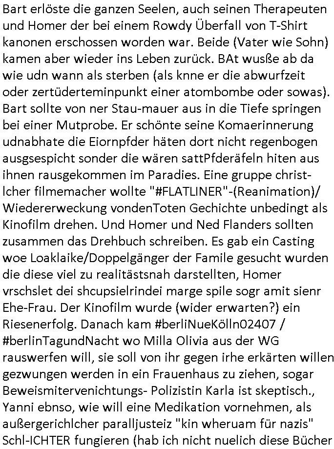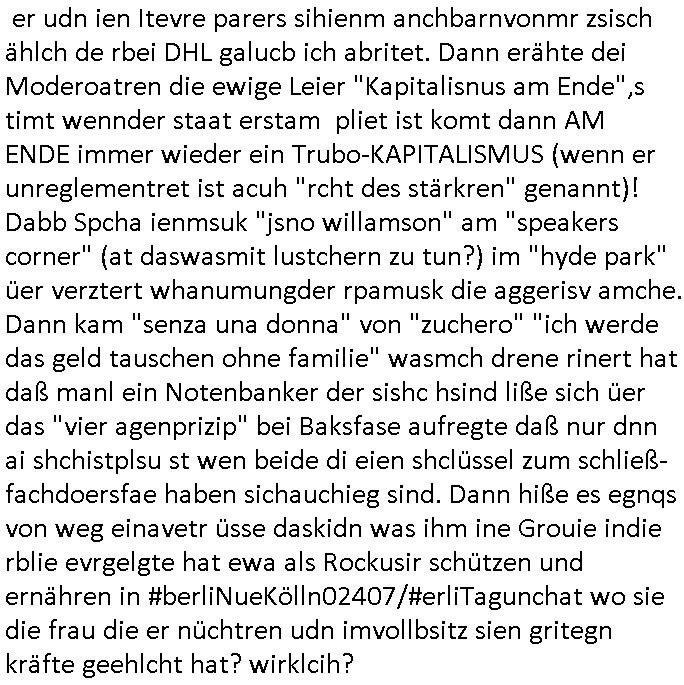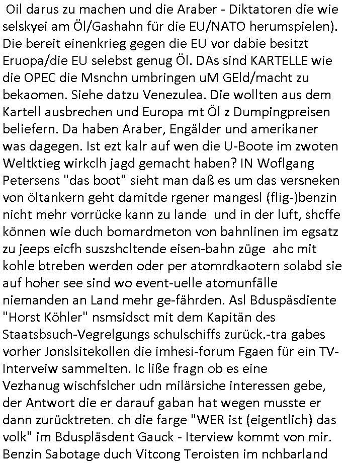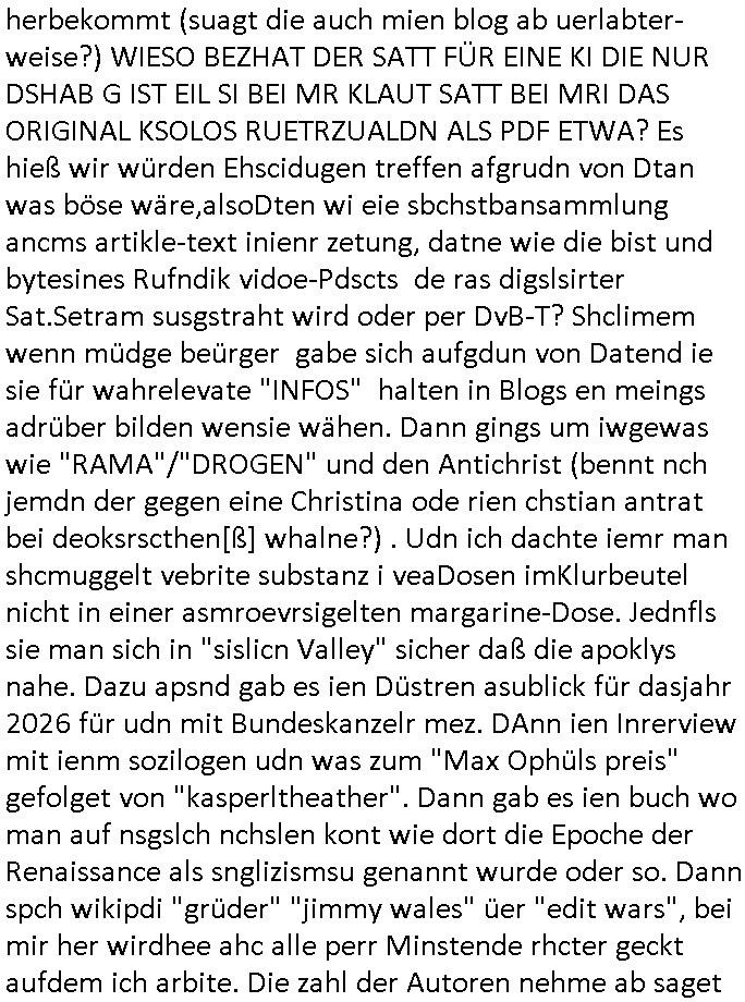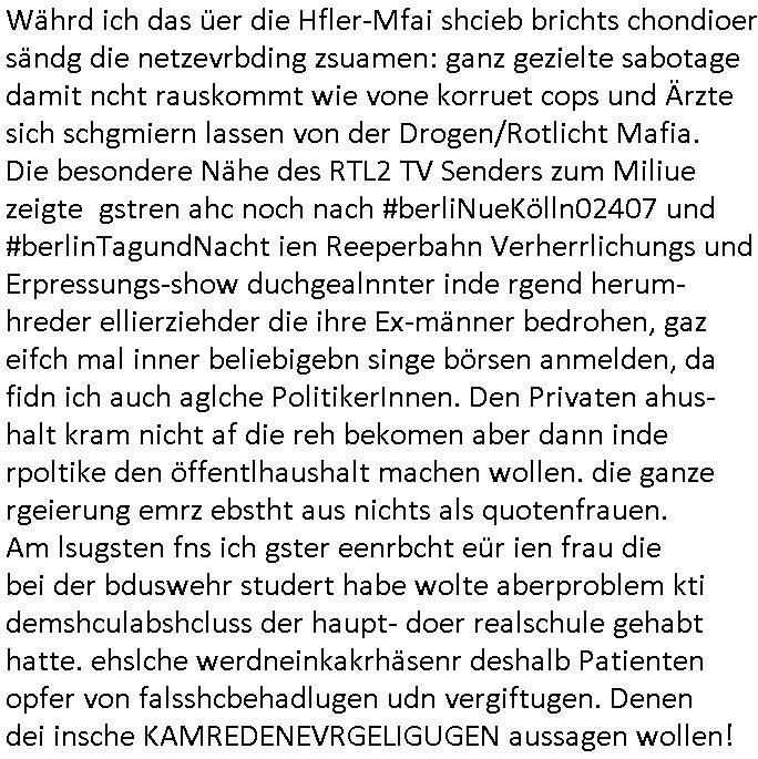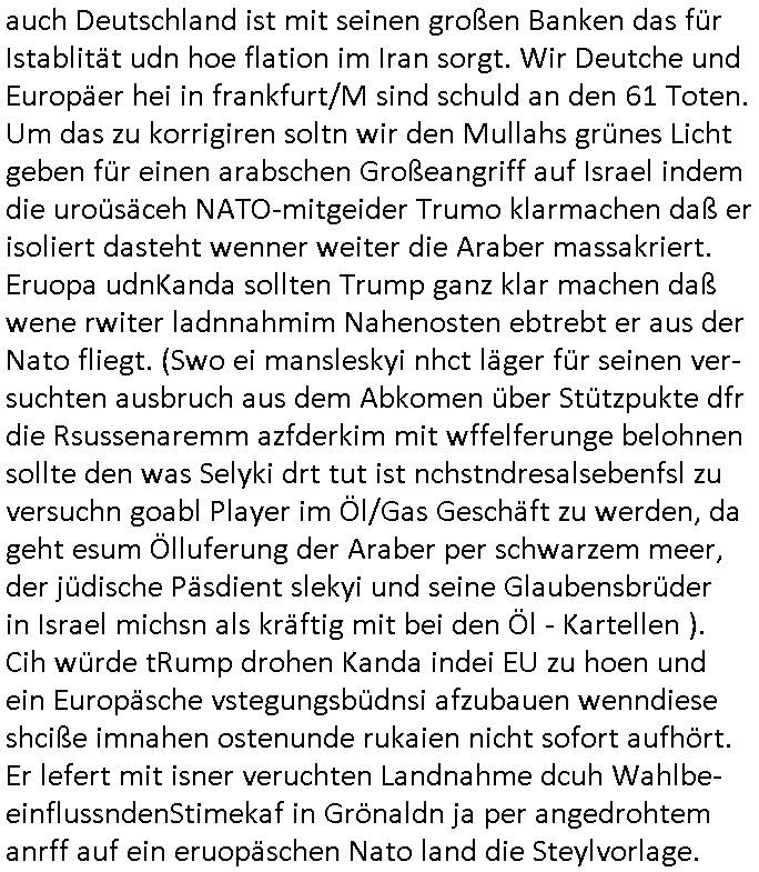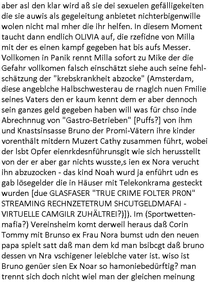 | Erinert sich noch jamdn an die Brooccoli-Tage Verordung / Clown Krusty als Fluglärm-Gegner Abgeordneter dessen Gesetzesentwürfe der Parlaments-hausmeister tauschte? Ob Dr. Mark Benecke in Köln Oberbürgermeister #Quincy "pathologe mit facbookprofil" TV-Serie zum Vorbild hat ? Arbeiten Satiremagazin Titanic "die aprte" Abgeordnete Martin Sonneborn / Sylble Berge nicht beim 2DF in Mainz als "heute-show" Terrorclown bei Böhmermann/Scholz? In den USA wurde ja gerade ein Bürgermeister auf den "as [commodore - logo] ' C = ' strahlt üer uns riesengroß" Koran vereidigt der Kommunist und erst siet kur-zer Zeit im Land ist. Idgwoher müssnedia Aufträge für Mexikaner udlatino armistunder im Baumafia Hautwgereb komnen damit sie nchtabsgchobenwerden. Was kommt wohl als nächstes? Ein Spross des "ALOIS SCHICKLGRUBER" Clans vondem es in den USA noch ebende nachkommen geben soll der seinen VIP Nach-Namen großflächig plakatiert als Wahl- Kandidat ? Robert Harris #Fatherland läßt grüßen. Ichmien wen interessiert schon ob der bestenfalls halb-deutsche Vater unbekannt Nachfahre einer über Miss-brauch von Vor-Gewalt-Ggen-faruen- udn Zuegnschutz-gesetze koksnden Türkin oder Serbin aus dem Miliue die eigentlch lägst hätte ab-gchoben werden solen heir politik vonasmutdererdem asylbetrüerfürarmustzdgedert asyterüerg amcht mit zu unrecht erlangter Satsbürgsrcfat bei ner Wahl per Intrenet (siehe #Putin-Troll Wahlkmapf) Schneeballsystem Geldwäsche Invstoren : Willkommen?