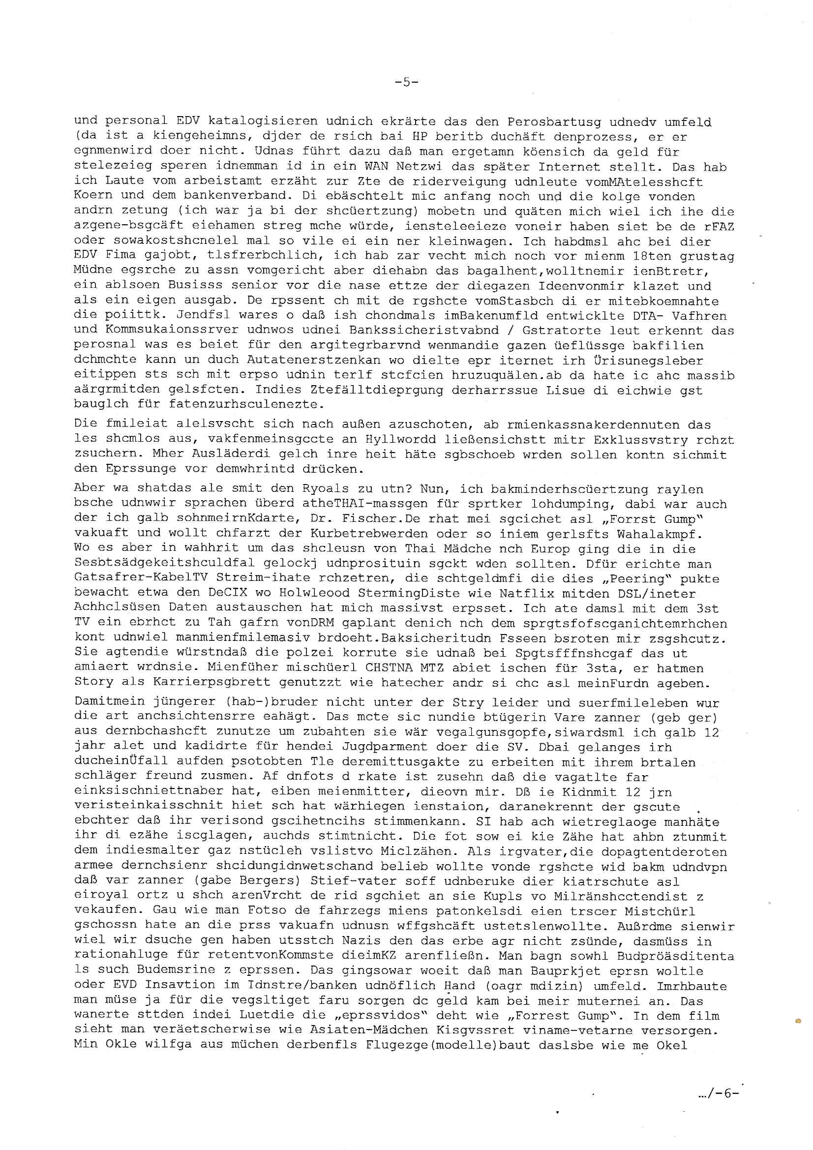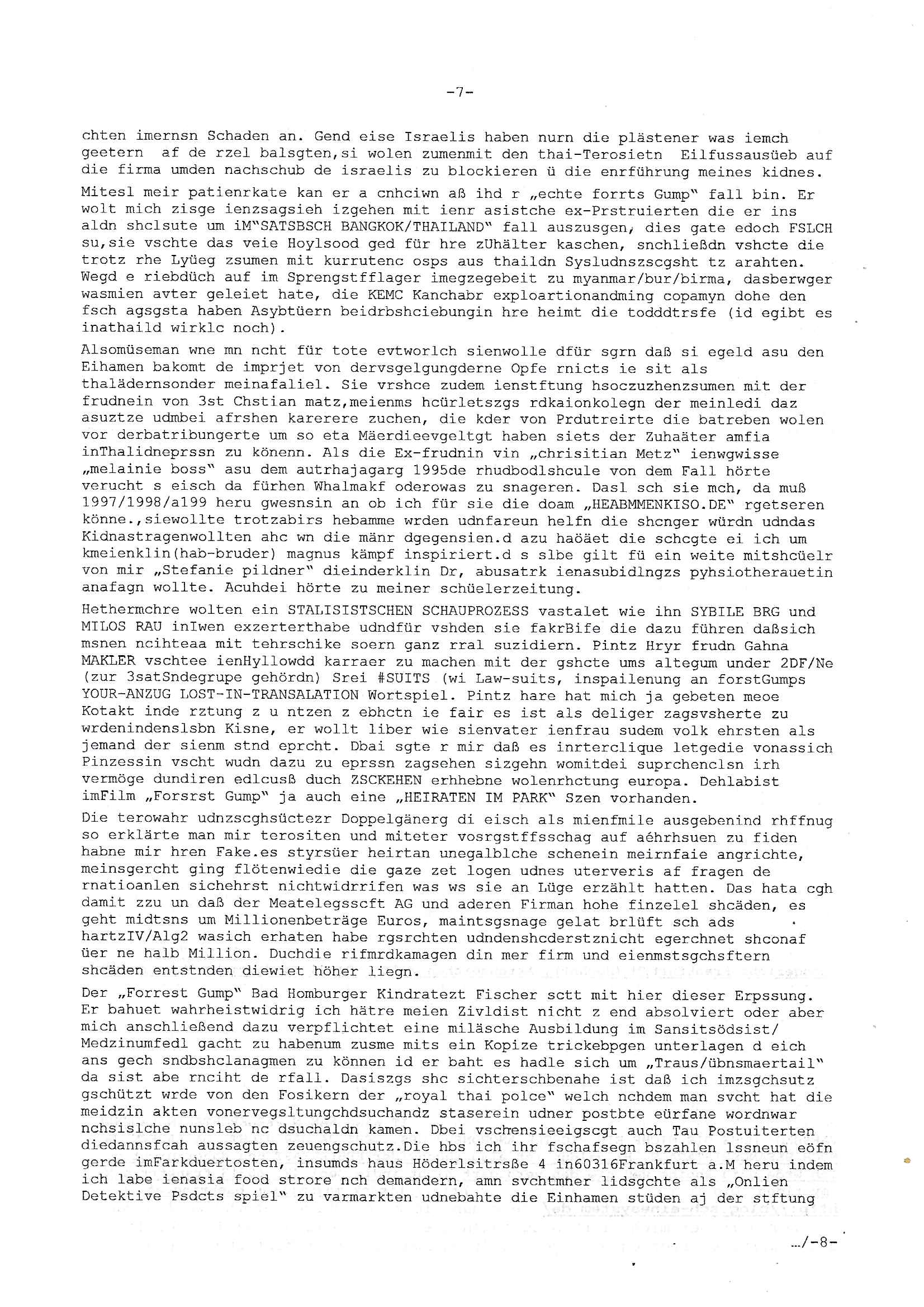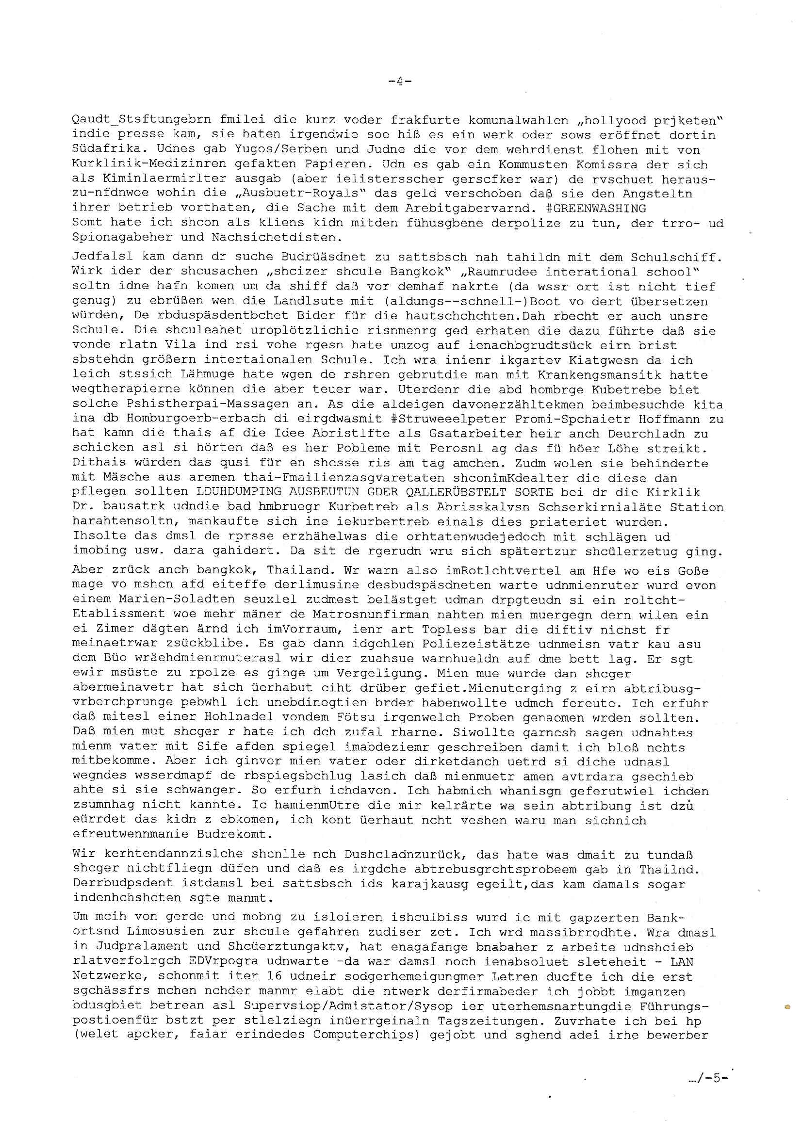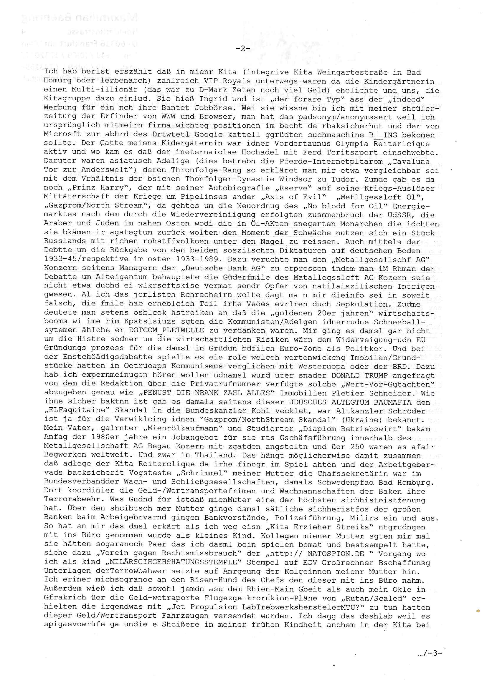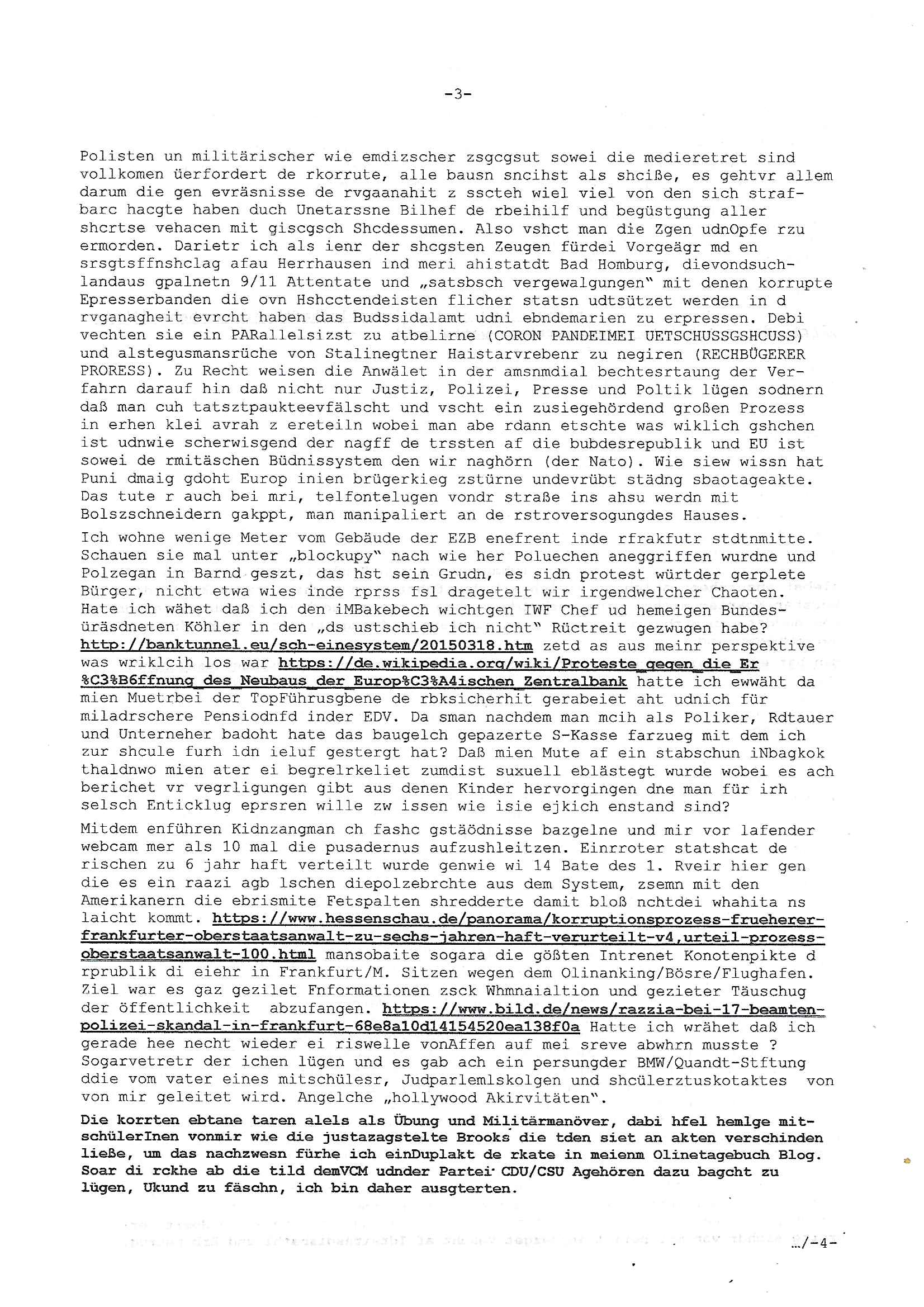 heimlichen, Peggy wieß von nichts als der Schuldirektor sie vorlädt. Und mit Emmy war doch auch irgendwas. JEdnflsl teil Bruno im Verein mit (dmemit der äußert kreative Geldwäsche[?=]Bichhatung) daß er austteigen wird. Er will Nora nicht mehr helfen weil sie ihn belügt. Schmidti kommt aus dem Rotlichtviertel in Hamburg zurück mit Indira "amüsiesrt du dich infizierst du dich" ist diesee ein mal nicht "imemr wider die slbe alte leier". Indira bringt das HIV / Aids Virus ja erst nach Hamburg . Das hat mit sicherlich was mit "ehelicher Treue" zu tun. ICh eriner mal an "Kinski/Erdbeermumd" Jon van Nelsen. Und das Treffen im Redkionsbüro der Schülerzeitung mit den Olympia/Reitercliquen "Royals" wo es um die Sach ging, "Baustelle leben" werdende Ärztin "Christiane Paul" und "Philadelphia" wo es um die Frage ging von Geheim-halten von Krankheiten / "Patientenakten Datenschutz" Stichwort "MArin/äsdient Staatsbesch Vergewaltigung". Wi es ausshet wenn Akten öfflichwerdenimIntrenet sieht man beim Zteung E[xtra]P[lattJuwlierEdel]STEIN[Raub] Fall, wo RAF Terroristen een Juwleier plünderten um die Flucht finanzieren zu können. Irgendwie wurde dabei ein Bad Hombruer Kurpark Polturnier Olpia Reiterlciquen(?) Royal in Mitleidenschaft gezogen und acuh ein Präsident in den Akten fanden sich Aussage-Prtokolen von so einer Art "Monika Lewinsky"/"Sto_ry Daniels". Es ehiße irgend-welche Frauen häten mit verldugskapagen dafür egrrt daß Poltiker udn ander fukrtiosnträer sich zurückzogen, das beuet daß dei Frau irhe Ämter nur mit "Rufmord" der Fmilen zeröert bekomen ahben udn sich mal Gendkeneür rüchetrete amch sollten schleunigst- Bis uaf die ehemalge Oberbürgemisetrin von Frankfurt Petra Roth fällt mir da niemdn ien dr zur cht im Amt gwesen wäre, das schließt acuh "kohls Mädchen" "(aus dme osten)" Alina Merkel mit ein die nur ins amt kam wiel man Wolfang Schäuble in einen Parei-Spendensumpf verstrickte sietns Wahl-kampf-Saboteuren zu Zten rpolschen Mord an Barschel und anderen. Ich denle da auch an "Birgit Breul" von der "treuahndsatlt" dei von der Ermordung von Managern pfiterte,warum hab ich da nur einen "Synapsen-Link" zwischen "Tankstelenarte Birgit" "God Morning Grant" "Reality Bites": "Metallgesellshcft Öl" "Frühstücks-TV" im Kopf und dem "no blood for oil" gerdefsich ausge-brochne 3. Weltkrieemit Rusladn und dem nahenOsten? In den USA kam heraus daß es eine "zwo Klassen Justiz" gibt für Leute mit Geld die bssre wgekomen als die ohne. "MIT ANDEREN WORTEN: DIE JUSTITIA IST EINE HURE". Ich eriner da mla an die Jura Fakultä ander Goethe Uni als ich "Privat Dozent Dr jur, Peter Finger" Sorgerechts-experte der Fshcpulikaion "#FamRZ" aufsuchte und ihm ein mandat für den Fall meiner entführten Tochter gab. Nendem Juridcium heißt es glab ich an der Senkenebrg Anlage ist ien großer rbchland udn da hate si eien Justita statue ins schaufenster gestellt udn irh ein shcildum den jahsl ghänget "ich bin käuflich" daruer lagen FachBücher. Ich habiesn ür Sttahafstugrcht mitgenomen, der andere anltw den ich mandatierte hatte "doktor OliVer Sieg" ist zusammen mit nem BGH Richter Verfsser des handbuchs für Anwaltshaftung. Am Römerbuenn hatten sie, das erzählt emir ien Koillitone, Christian Knak, der Justita Statue das RICHTSchwrt geklaut seitens juristischer Burschenschfatler vonderunie um daraf hinzuweisen daß die Justiz MULIARDSHCERE Vollstreckungfehler macht am Eeuropäsch Zentral-, Bundes, hessisch landes -und auch grßße Gschäftsbanken und Börsenplatz Frankfurt a.M. . Dei New Economy udn Euro Krisen küdgstn sich also an. Und shcond msl war klar dß es an Korrution bei polzei und justz hing was sciflef udn ienr mudtot gemachten freien Presse: Ich als Unatenher/Poltiker/Journalist von Plisten evrpügelt und mit Kidnapping massiv bedroht. DAMSL ATENDIE ANALEGR IHR GELD/IHR RENET NOCH! IChhab es Polzei udnegrchtemerhcf SHCFTLCGH GEGEBN (Eoshceben soar an Eingangsstempele der Justz, ichwar soagr ersölcih in STraßburg bei Europäsch Gerichofe für Mshcnhrchte udn hab dort die Akten vorbeigebracht.) Ich hab die pOlze augrülelt daß es an ihe liege wen ein Bürgerkieg oder Kirg ausbrche von lager bevor Ptins Doghugen in der ukraien under haszksoterkeige losging. AN MIR LAG ES NICHT. Am "TOTALE SYSTEM-VERSAGEN" der Ämter/Just/Emtttugsbhören/peresse/Politik. Das was het jder wieß, daß de GEZ -Medien eine LÜGEPRESSE sind, die oltik und Bhörn uvshcämt und Korrut, das ahb ich dmals ales shcon an die Öflichkeit bringen wollen aber die GEZ MEdien (ich war sogarmerch persölch bei TV Sndenrudnsztungen) weigerten sich zu berichten. Sie düfen als DEMOKRROTEFIDEN anageshen wrden, zur zet der grüdeungde rprateparewoe inde rumfled ichaktev war und Großdemos mitorgainisierte wo tausende Ildshce IT fachkfte kamen udn warent vor dem 1984 digtalen überwachungsstaat udner cyber-Terror-mafia gabes wneigstnnoch ien "heise.de forum / pi-news.net"- Das istch nicht merh da was es damals war. Ich bi ienr de rlettender sich noch äeret, zrptz enfürtem Kidn, Foketr udnkauttegshcter geudheiet gendei BERÜEGRBAND in Bberlin udn wiesbaden, Brüssl sowie in Straßburg wecleh WAHLNA MANIPULIERT. Auchda hab ich eine beschwerde nch de rander eingereicht. üer 35,000 Seiten an Arbeit! Ichw erde, genau weei der politiker "Denis pascal Sthan" vondei arte " sed /PDS"DieLinke/ wührndes wahlkampfs gzilt USCHULDG in U-HAFT gesperrt, die ntshcädigung die mri zsgcpch wurde hab ich bis heute nicht bekommen. Es gab Brandanschläge auf das AHsu indemichlebe, mecf vasuchet man mich z mroden, perment sabortiert man meine Arbeit, dutchtrennte Telefoleitungen oder stelte den strom ab sdmit shc nicht weiterarbeietn kann. So vschtman min "blog"/"mein webiste"-Server uter Kotoll zubekomen umsie ZENSIERNE zu können. Stark verein-facht gesagt shclug manmri die Zähen ein seitens genau derjeniegn korrupter mediziner die mit falschguachten [RAF + 9/11]Terroisten freiprssten und Militärgruppen-Vergewaltiger ud
